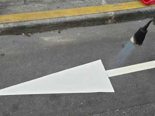- Chauffer l’emplacement à marquer en débordant légèrement des limites du marquage pour faire remonter les liants