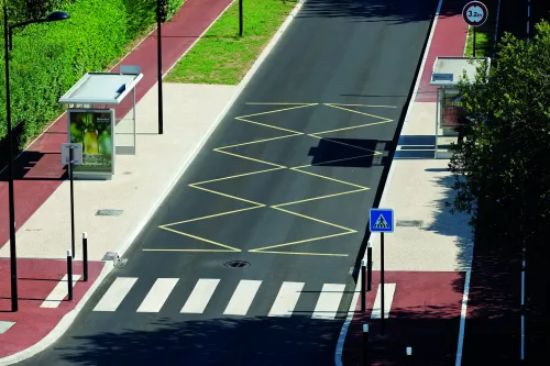 Peinture à l’eau polyvalente destinée à réaliser des marquages en ville comme sur route afin de guider efficacement les usagers.