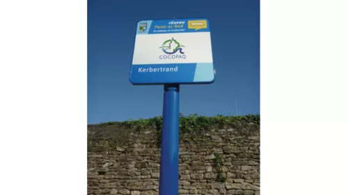 Large éventail de balises d’arrêt de bus pour informer les usagers, qui s’insèrent dans l’environnement urbain et rural.