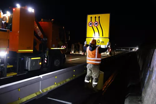 Réalisé en groupement avec Colas, le chantier mobilise une quarantaine de collaborateurs d’Aximum, ainsi qu’un grand déploiement de moyens ; Tous nos métiers sont concernés, du balisage lourd à la signalisation verticale, en passant par les dispositifs de retenue en béton et en métal et les travaux d'assainissement. Nos industries jouent également un rôle essentiel sur le chantier, en fournissant les équipements de la route destinés à remplacer les installations actuelles : glissières métalliques, dispositifs d’ouvertures rapides, atténuateurs de chocs, supports à sécurité passives ...